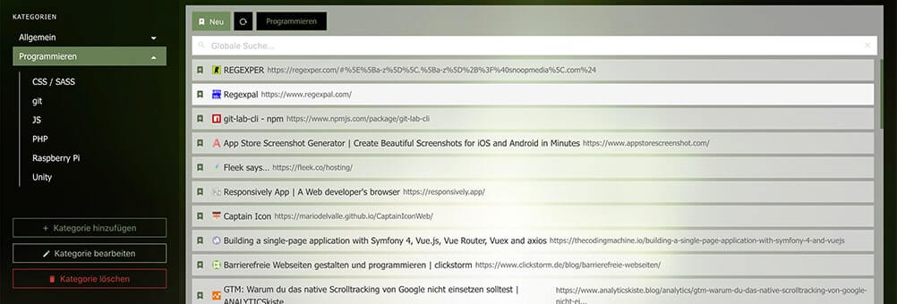 Chrome Lesezeichen bieten nicht genügend Freiheit, Pocket hat nicht immer sauber gearbeitet, Qlearly hat meine Lesezeichen alle gelöscht und war danach nur noch verbugged und Google hat schon genug Daten von mir. Mit Bookmark-it hoste ich meinen eigenen Lesezeichen Manager und habe die volle Kontrolle über meine gespeicherten Links. Die Anwendung besteht aus drei Teilen: Der VueJS App, der Symfony API und der optionalen Chrome Extension.