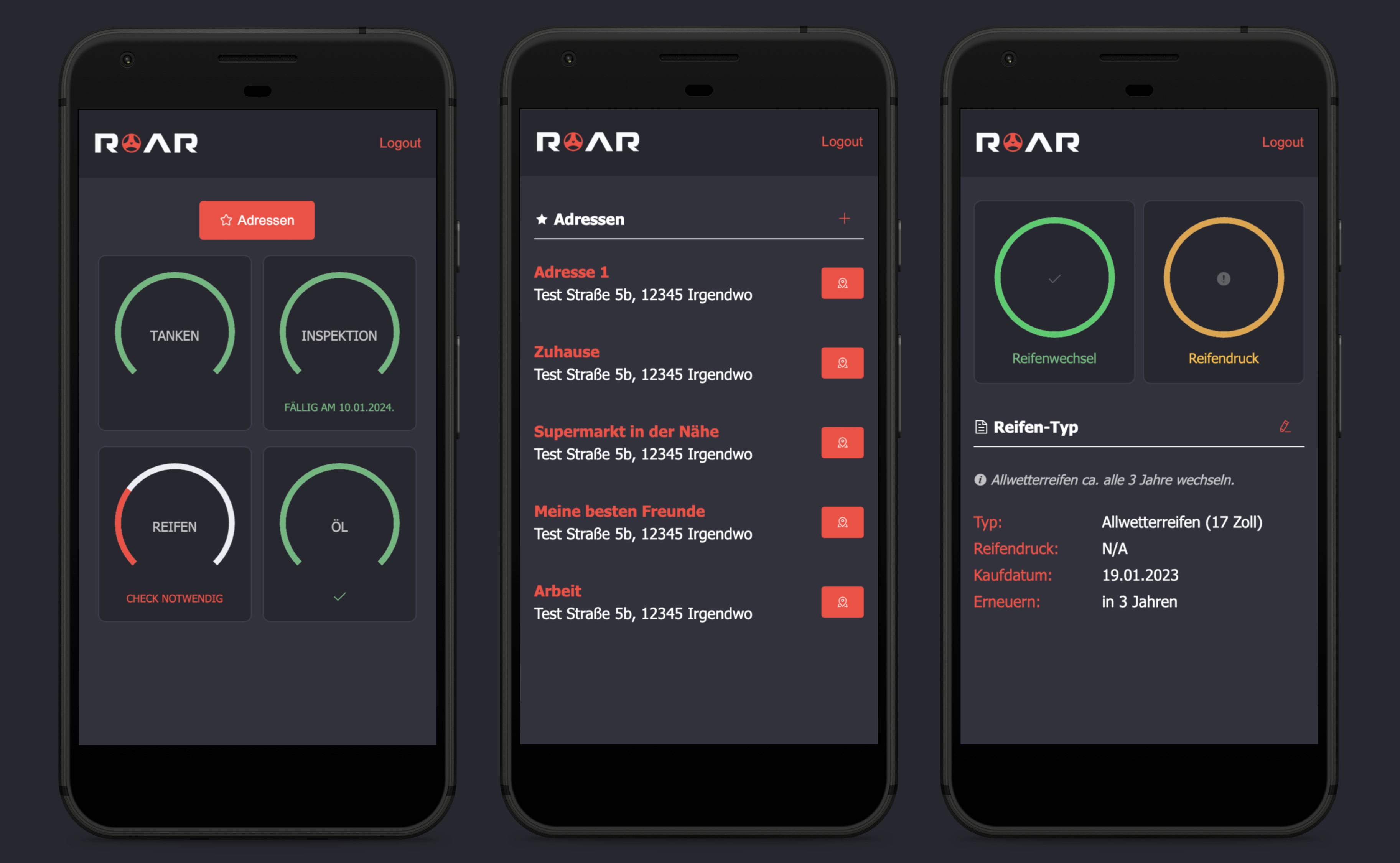 Nachdem ich Jahre lang meinen Ford Mondeo mit dem Motto "Wird schon schief gehen!" gefahren bin, möchte ich nun etwas mehr Zeit und Liebe in meinen gebrauchten Peugeot 2008 investieren. Dazu habe ich ROAR entwickelt. Mit Hilfe der App protokolliere ich verschiedene Attribute wie Tankfüllungen und Reifendruck, woraufhin sie mich an anstehende Checks und Inspektionen erinnert. Außerdem kann ich gespeicherte Routen direkt an mein Auto Navi senden.